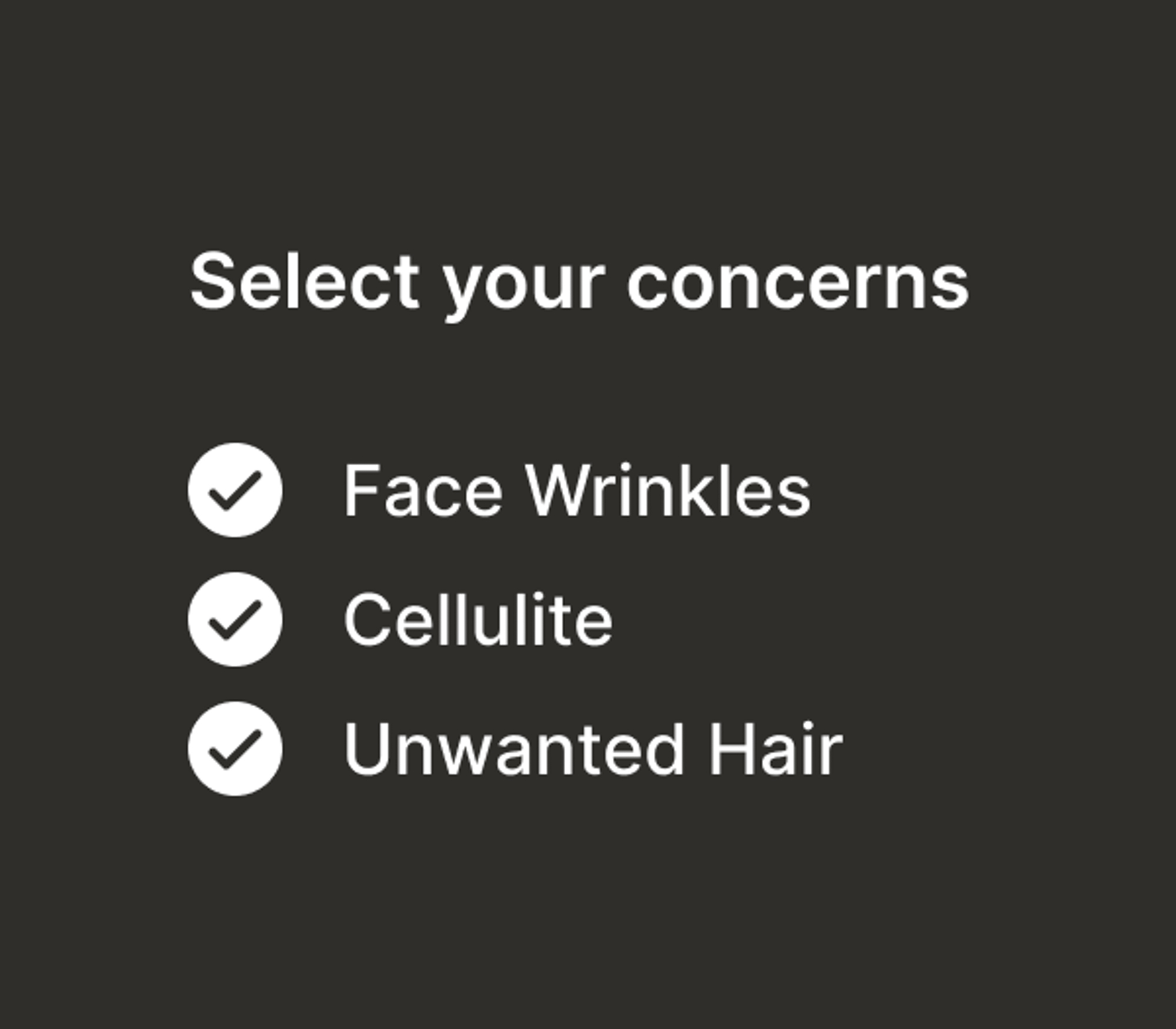 Personally curated plans right at your fingertips. Select your unique concerns to unlock the possibilities.